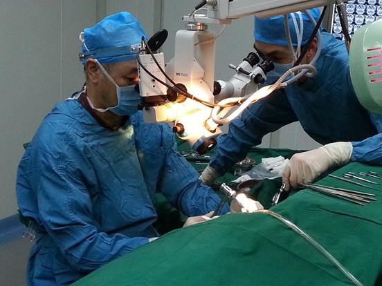 张全安教授在  目乐显微镜下实施耳显微外科手术