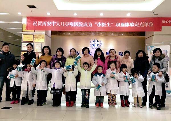 2015年12月5日,西安新城中大耳鼻喉医院举办了首次“小医生”职业体验活动,学生家长满意而归,社会反响十分热烈;2015年12月26日,顺应群众意见,西安新城中大耳鼻喉医院与童心园亲子体验营再次合作,举办了场更加精彩更有意义的耳鼻喉小医生体验活动;2016年1月16日,跨过一个新年,在大家的翘首以待下,“小医生”亲子体验轮活动终于再次开课啦。