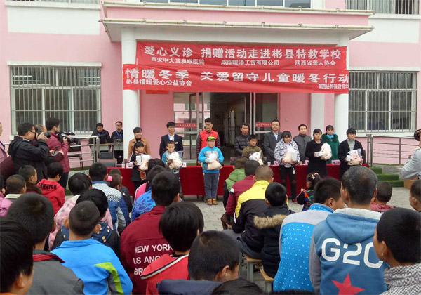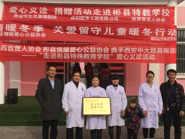 为呼吁全社会共同关注弱势群体,11月18日上午陕西省聋人协会、彬县情暖爱心公益协会携手西安新城中大耳鼻喉医院在彬县特殊教育学校为该校学生开展“关爱残疾儿童·关注弱势群体”爱心义诊,帮助孩子们检查身体。
